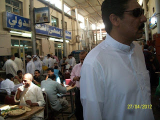 27.04.2012 அன்று காலையில் பாலிவுட் ரெஸ்டாரண்ட் என்ற தமிழ் உணவகத்திற்கு நானும் பாஷாவும் சென்று காலை உணவை முடித்தோம். சாலையோரங்களில் குவைத் டவர், பாராளுமன்றம், மிஷாரி தொழவைக்கும் பள்ளிவாசல் என பல்வேறு இடங்களை பார்த்தவாறே நிகழ்ச்சி நடைபெறும் வளாகத்திற்கு சென்று பார்வையிட்டோம்.. அங்கே ஊடகத்துறை செயலாளர் பீர் மரைக்காயர் தலைமையில் பணிகள் நடைபெற்றுக் கொண்டிருந்தன. செயலாளர் முஜீப் துணைச் செயலாளர் அமானுல்லா கான் ஆகியோர் மக்களை ஒருங்கிணைக்கும் பணியை செய்துக் கொண்டிருந்தனர். அதை பார்வையிட்டுவிட்டு ஜூம்ஆ தொழுகைக்கு சென்றோம். நைஜீரியாவைச் சேர்ந்த கத்தீபின் ஆங்கில உரை அருமையாக இருந்தது. அதை முடித்துவிட்டு ஒரு சில நாஃப் அமைப்பைச் சார்ந்த சகோதரர்களை சந்திவிட்டு மதிய உணவிற்கு தயாரானோம். தலைவர் தாஜ்தீன் அவர்கள் வங்கிச் சாலைக்கு அருகிலுள்ள பழமைவாய்ந்த ஈரானி உணவகத்திற்கு அழைத்துச்சென்றார். சுவையான சுட்ட மீன் மற்றும் ரொட்டி வகைகளை சாப்பிட்டுவிட்டு நிகழ்ச்சி நடைபெறும் இடத்திற்கு புறப்பட்டோம்.