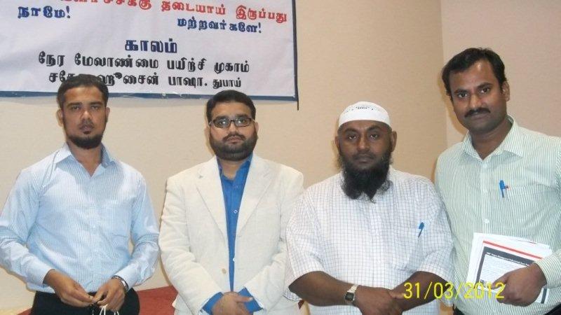 இன்றைய காலகட்டத்திற்கு மக்களுக்கு மிகவும் அவசியம் என கருதிய நேர மேலாண்மை (இஸ்லாமிய பார்வையில்) என்ற பயிற்சி முகாமையும், அறிவரங்கம் என்ற விவாத நிகழ்ச்சியையும் 27.04.2012 அன்று நடத்துவதற்கான ஏற்பாடுகள் செய்யப்பட்டன. துபாயிலிருந்து 26.04.2012, வியாழன் அன்று நான் செல்ல வேண்டிய விமானத்தில் தொழில் நுட்ப பிரச்சனை இருந்ததால் வேறு ஒரு விமானம் ஏற்பாடு செய்யப்பட்டு அமீரக நேரம் மாலை 6 மணிக்கு புறப்பட வேண்டிய நான் இரவு 8.30 மணிக்கு புறப்பட்டேன்.