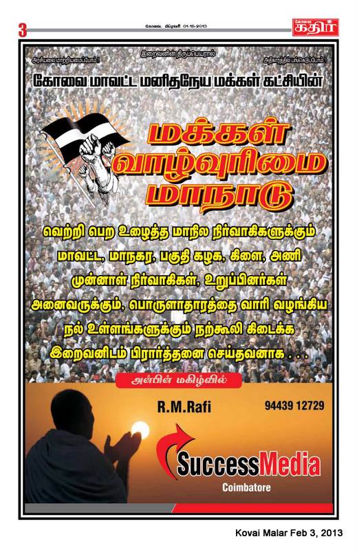 பிப். 3 அன்று கோவை மனிதநேய மக்கள் கட்சியின் மக்கள் வாழ்வுரிமை மாநாட்டில் வெளியிட உள்ள கோவை மாநாட்டு சிறப்பு மலர்.
