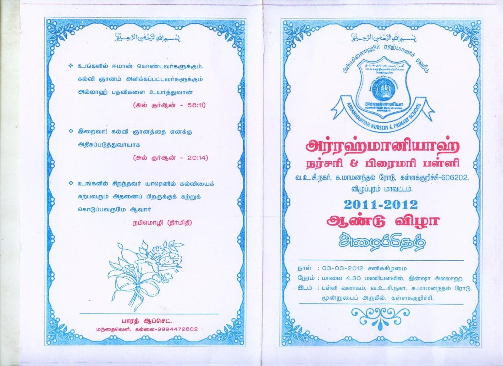 Kallakurichi Arrahmaniyah School – Annual Day-2012