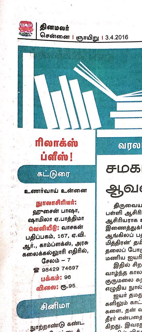 தினமலர் நாளிதழில் உணர்வாய் உன்னை அறிமுகம்