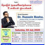 சவுதி அரேபியாவின் tab G குழுமம் 04.07.2020 அன்று நடத்திய நிகழ்ச்சியில் முனைவர் ஹுஸைன் பாஷா அவர்கள் கலந்துகொண்டு தொழில் முனைவோருக்கான உளவியல் நுட்பங்கள் என்ற தலைப்பில் சிறப்புரையாற்றினார்.